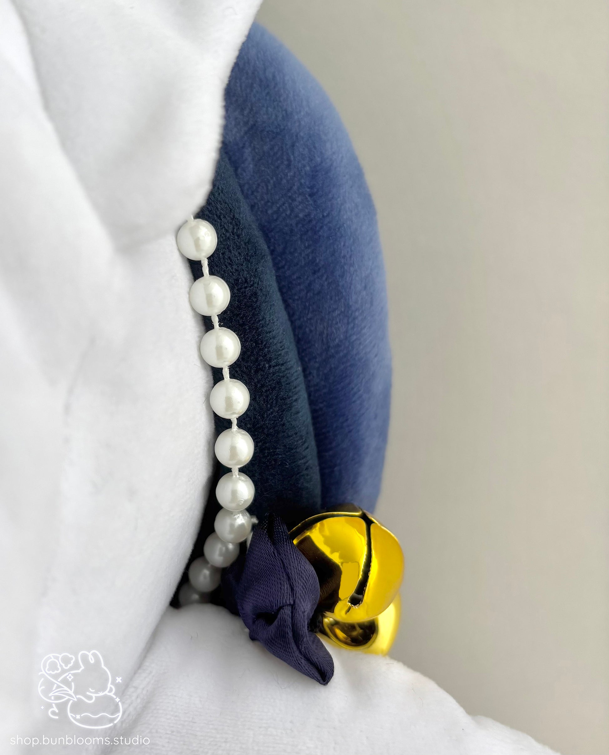 Made of silky-soft minky fabric and outfitted with real bells, pearl beads, and shiny satin bows, she is the perfect companion for a warm hug.